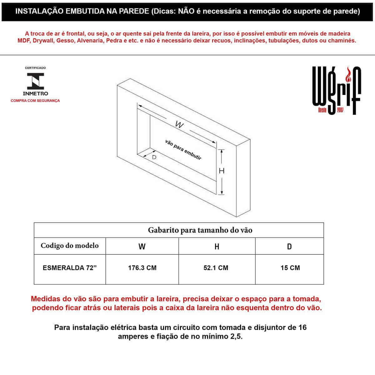 Lareira Elétrica Wgrif – Esmeralda-72″ 220V – 1800W