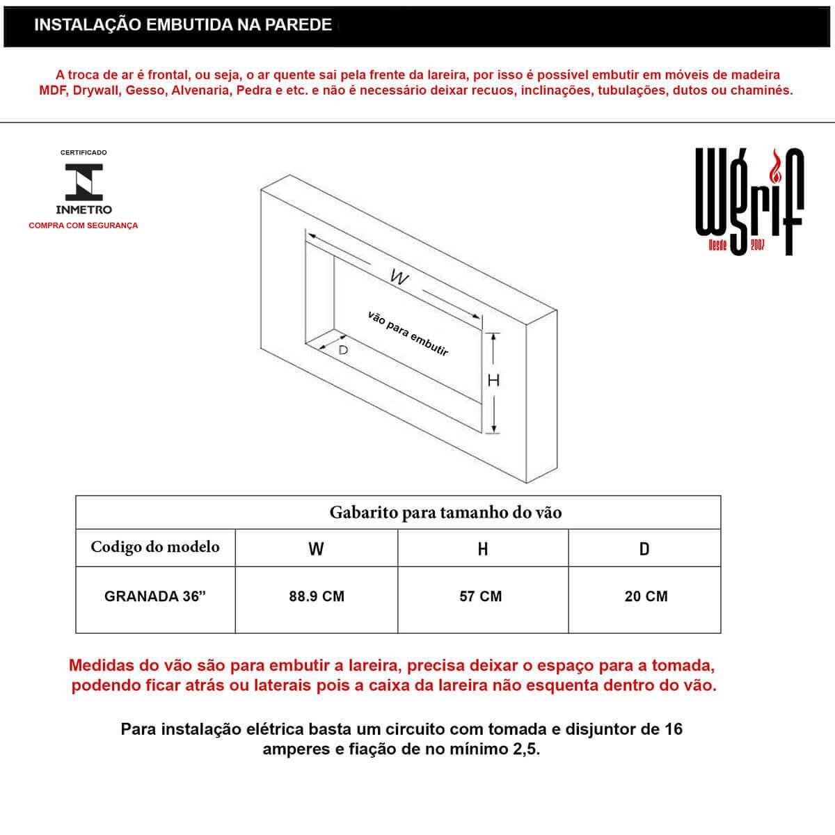 Lareira Elétrica Wgrif De Embutir Granada 36″ 220V 1800 Watts Modelo Tradicional